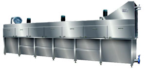 (1)本機根據流態化原理設計而成,適用于禽類脫毛前的浸燙工序。主要由池體、蒸汽罩、撐輪、蒸汽加熱控制總成,熱風循環總成、自動供水總成和電氣設備等組成。